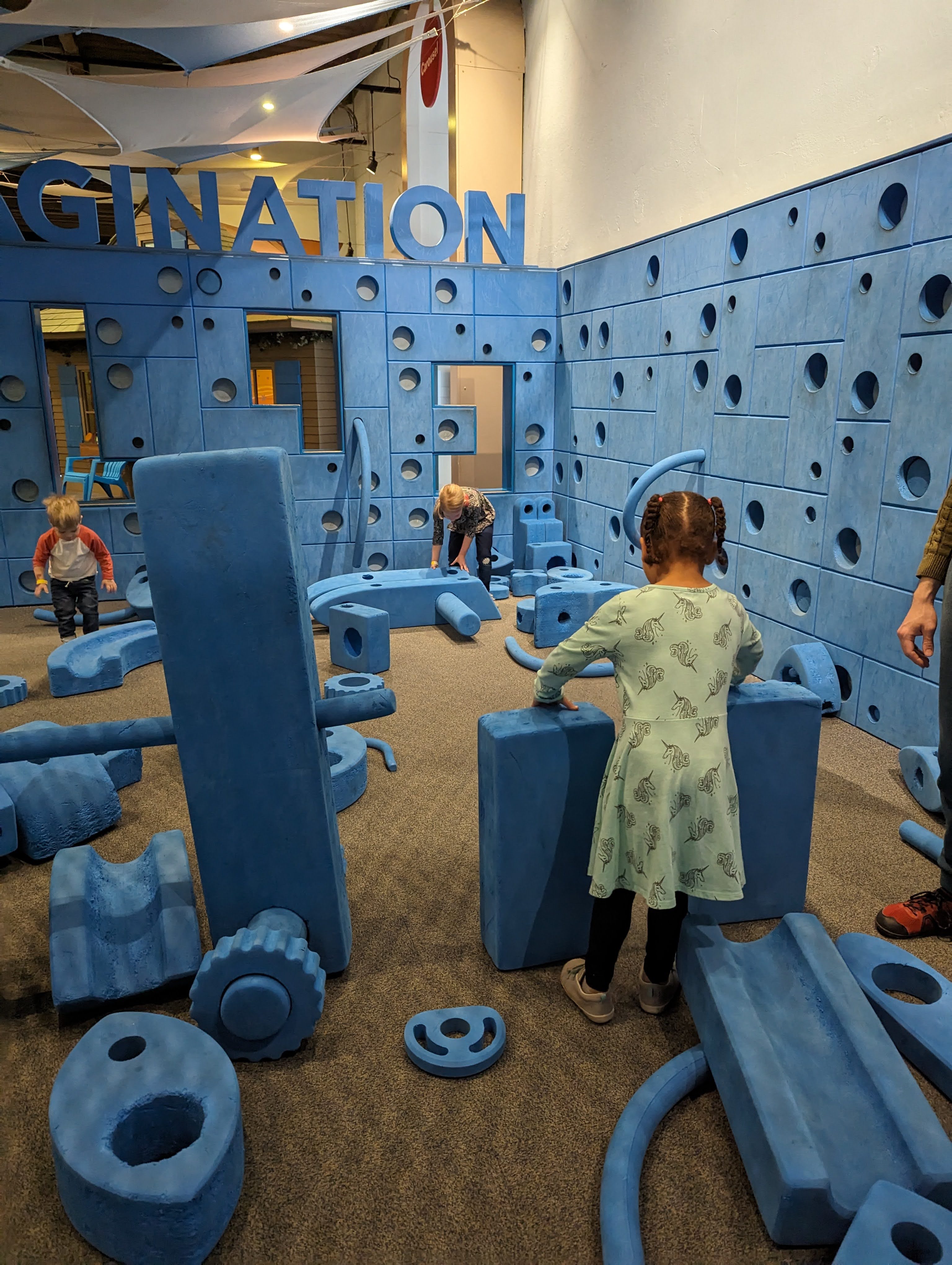 We also enjoyed the space room, which was off the beaten path, and thus much less overstimulating. It was a welcome break from the noise of the rest of the museum. The girls really enjoyed launching little foam rockets.